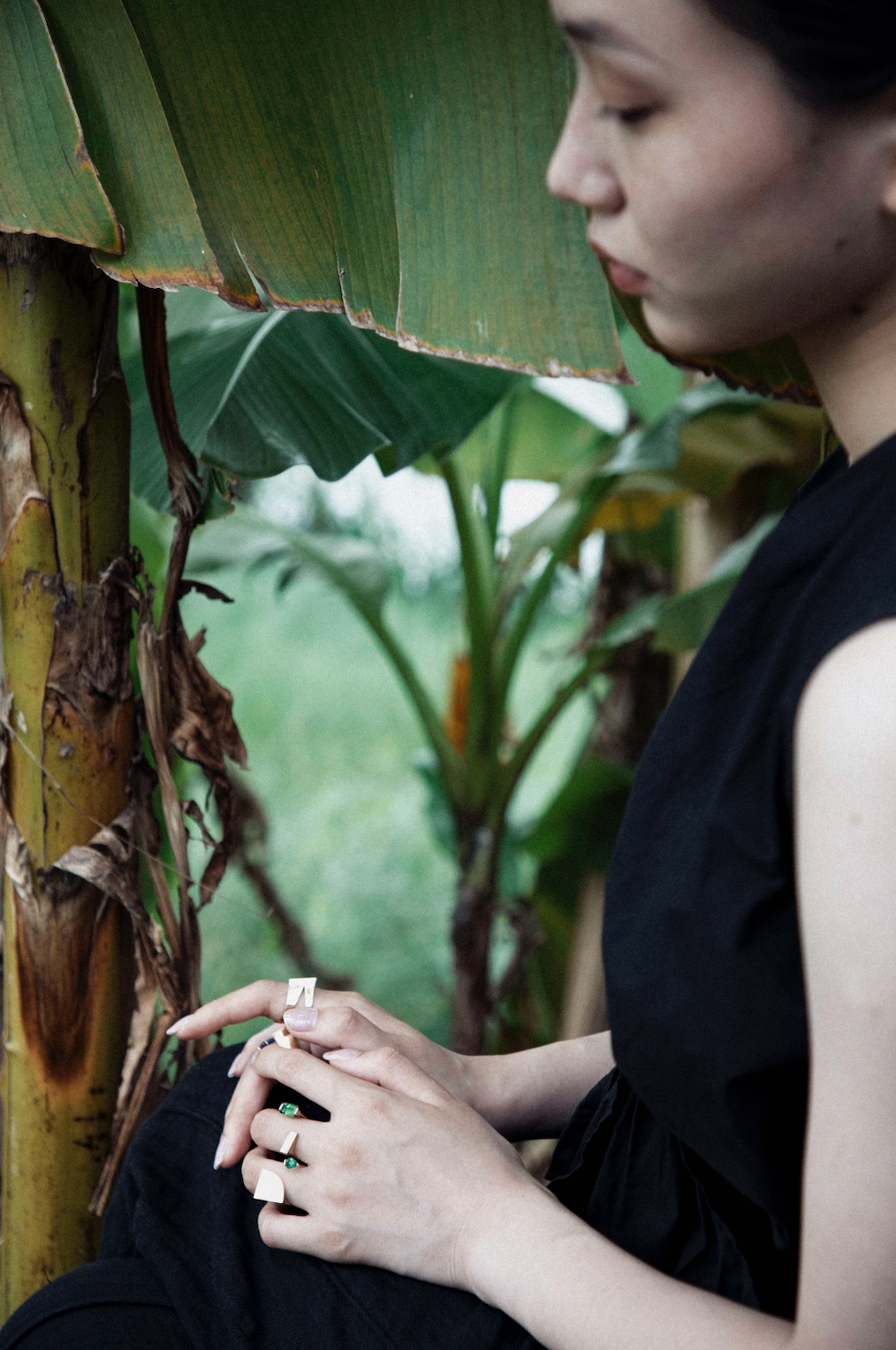 Shadow Play II Geometric Mirrored Gemstone Ring
